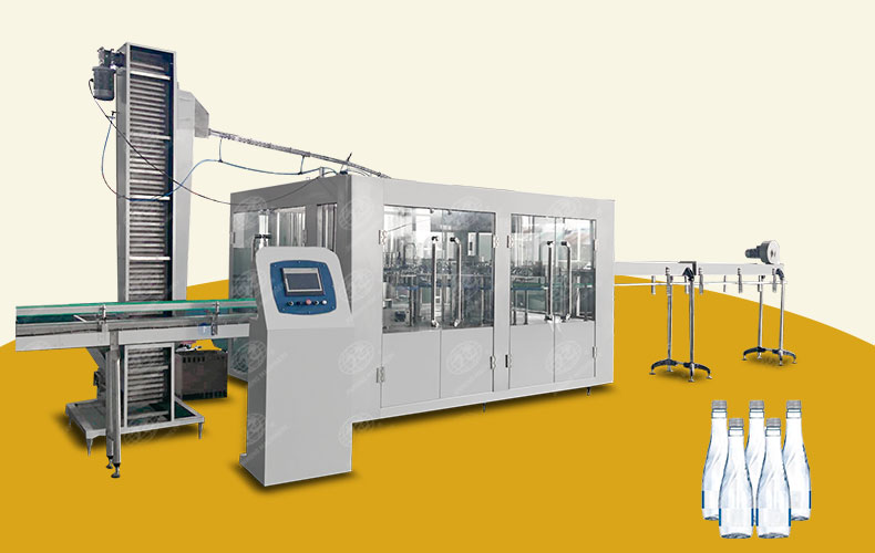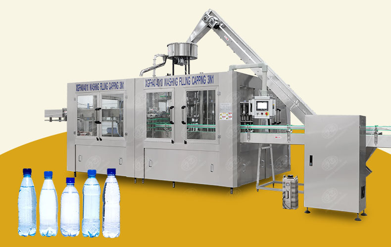 金榮灌裝機(jī)械供應(yīng)的200ML-2L小瓶飲用水灌裝機(jī)集清洗-灌裝-封蓋三合一于一體,可用于PET瓶或玻璃瓶灌裝純凈水、礦泉水、飲用水、果汁等。...