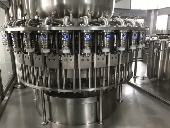 3.灌裝機械壓力灌裝機壓力灌裝機在高于大氣壓的壓力下進行灌裝生產,可分為兩種:一是儲液罐內的壓力等于瓶內壓力,液體靠自身重量流入瓶內,稱為等壓灌裝;二是儲液罐內壓力高于瓶內壓力,液體靠壓差流入瓶內,常用于高速生產線。壓力灌裝機適用于灌裝含氣液體,如啤酒、汽水、香檳等。灌裝各種飲料的瓶子。飲料機械的流程基本相似。然而,由于飲料的性質不同,使用的灌裝機和封蓋機也不同。例如,在啤酒灌裝生產線中,除了合適的灌裝和封蓋機之外,還增加了一臺滅菌機。根據不同的蓋子形狀,封蓋機選擇相應的型號。裝滿空瓶的箱子疊放在托盤上,通過傳送帶送到托盤卸載機,然后托盤一個一個卸載。空瓶子從箱子中取出,通過傳送帶送到洗箱機,清洗干凈,然后運送到裝盒機,這樣就可以在兩者之間裝入裝有飲料的瓶子。從卸載機取出的空瓶通過另一條傳送帶送到洗瓶機進行消毒和清洗。經過檢瓶機檢查,符合清洗規格后,進入灌裝機和壓蓋機。飲料由飲料機械灌裝成瓶。裝有飲料的瓶子由封蓋機封蓋和密封,并輸送到貼標機進行貼標。貼標簽后,送到包裝機裝盒,再送到托盤堆垛機堆在托盤上,送到倉庫。