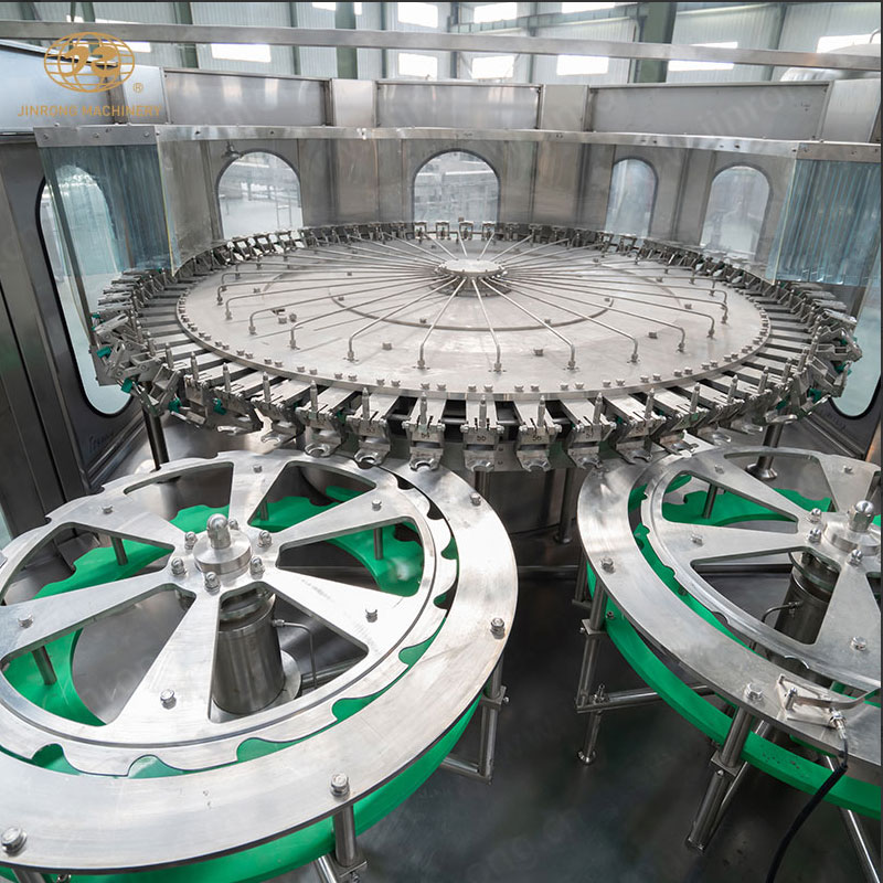 金榮機械主導產品有沖瓶灌裝旋蓋三合一機組、灌裝旋蓋二合一機組、灌裝封口二合一機組、全自動吹瓶機、加侖桶裝系列機組、水處理生產線、自動就地清洗系統、各種殺菌成套設備、沖瓶灌裝封口生產線、果汁果茶飲料成套設備等